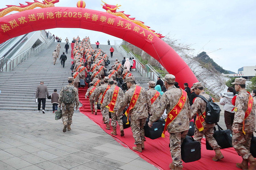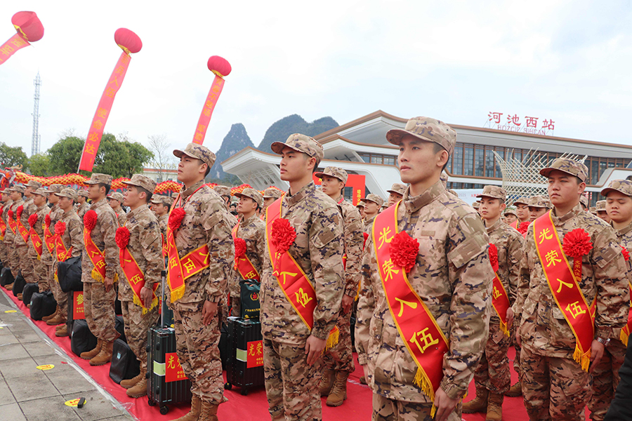 3月16日,河池西高铁站站前广场热闹非凡,河池市2025年春季新兵入伍欢送仪式在此隆重举行。此次仪式由河池融媒文化传播有限公司承担广场现场布展工作,为活动的顺利举办营造出热烈而庄重的氛围。市委常委、军分区大校政治委员李前出席仪式。
